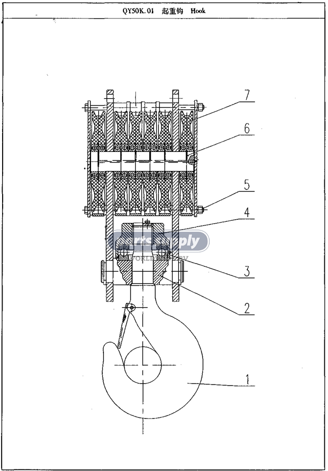 Hook for XCMG QY50K reference QY50K.01. ELS BV offers hook blocks and lifting equipment for mobile cranes. Visit our parts catalog and send your request or quote!